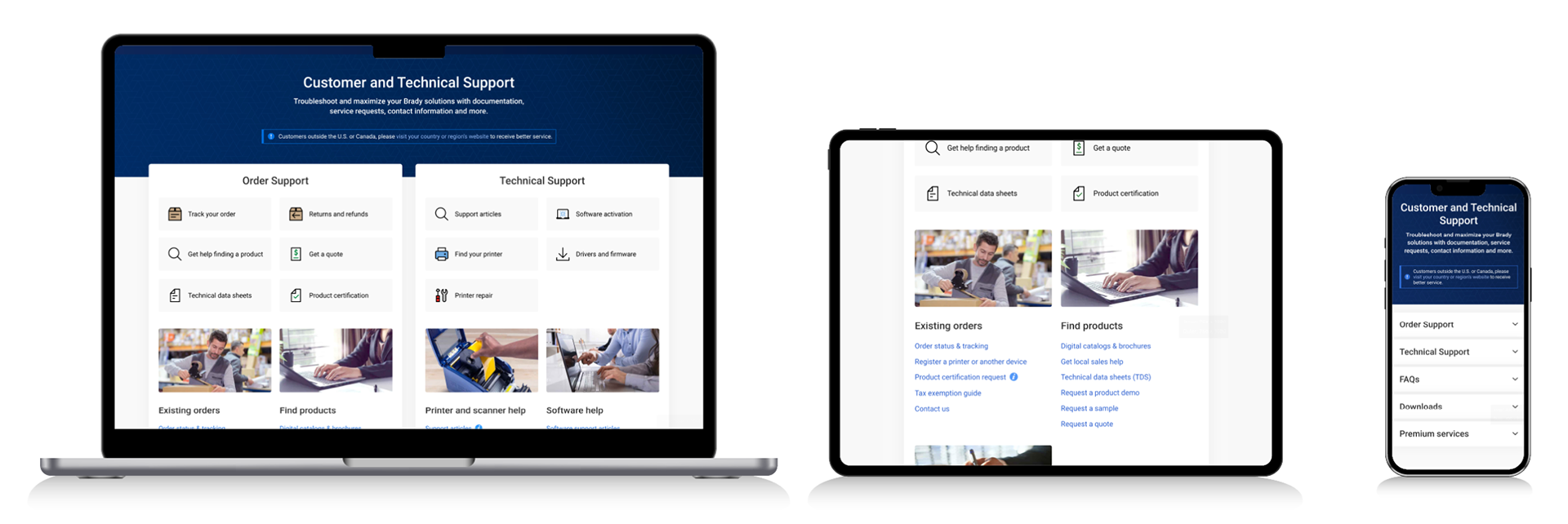 I designed and developed the support section for BradyID, delivering a modern, cohesive brand experience that prioritizes user needs. By streamlining navigation and integrating self-service features, the new design empowers users to easily find the resources and solutions they need.
