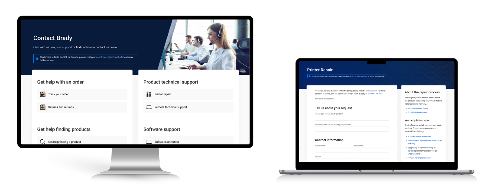 I designed BradyID’s contact pages, applying the same research-driven workflow of user analysis, wireframing, and iterative design. The pages were optimized for clarity and ease of use, ensuring they aligned with the brand’s refreshed visual style and integrated seamlessly with the CMS. The redesign focused on enhancing the user journey, making it faster and more intuitive for customers to find the right contact information.